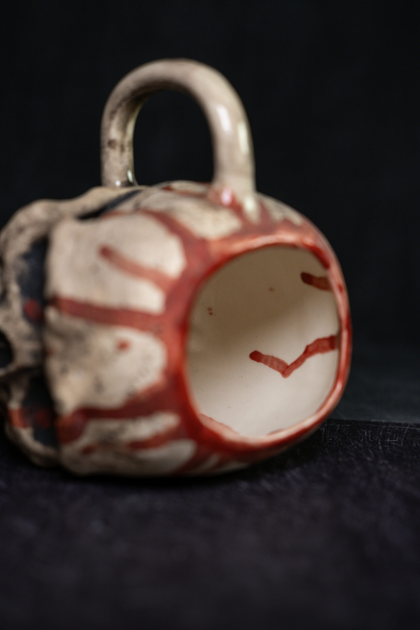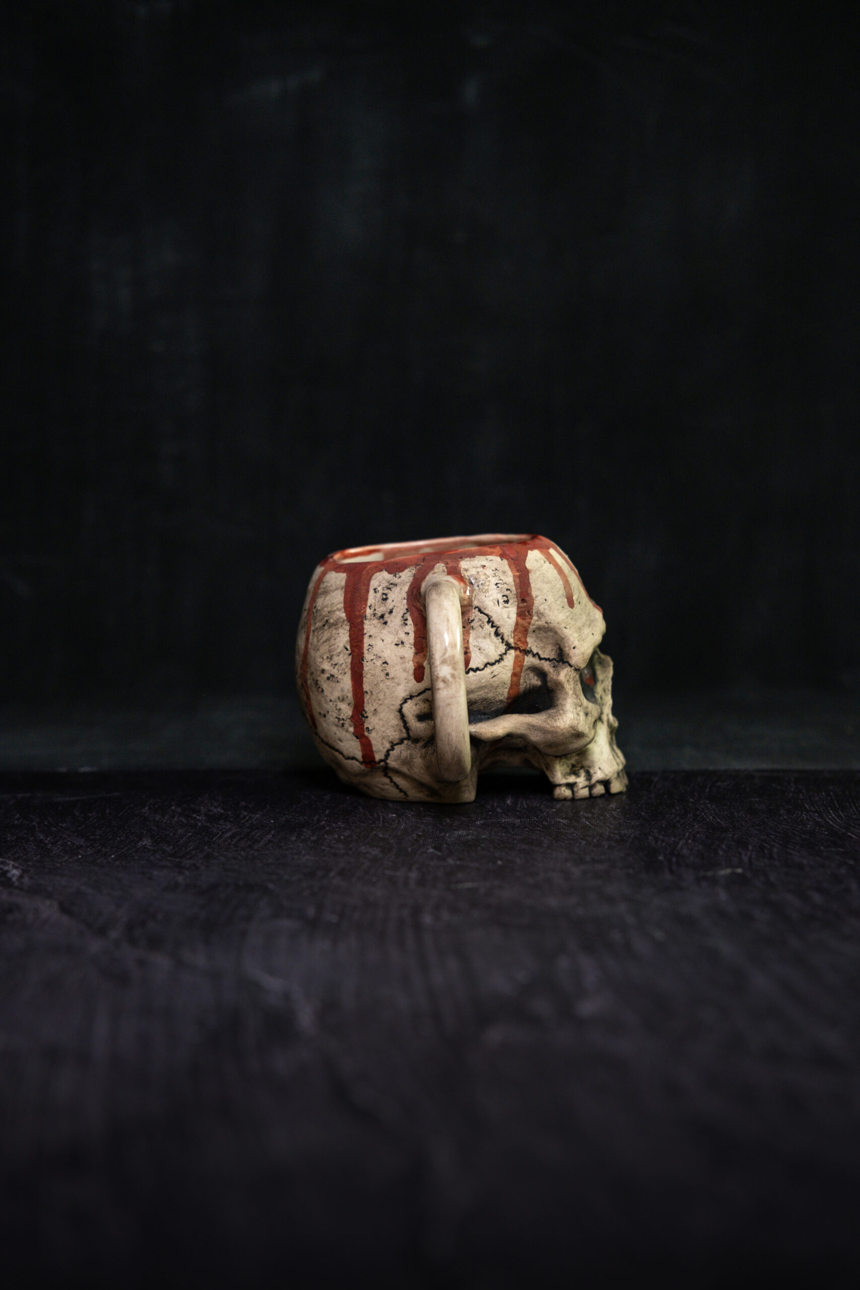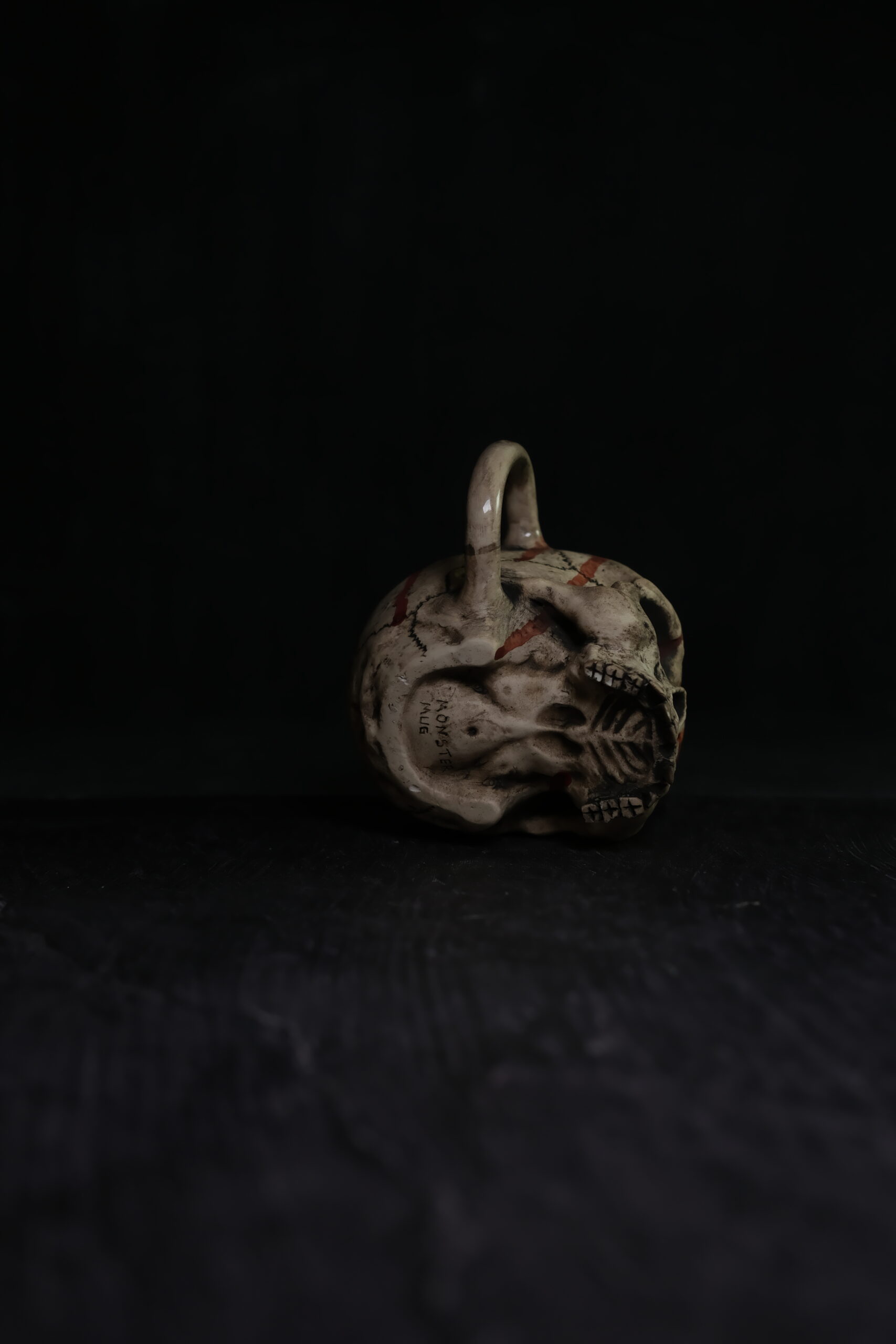 The skull stoneware mug is completely handmade. It was produced in a small business. It has been carefully studied to give the bony tissue.