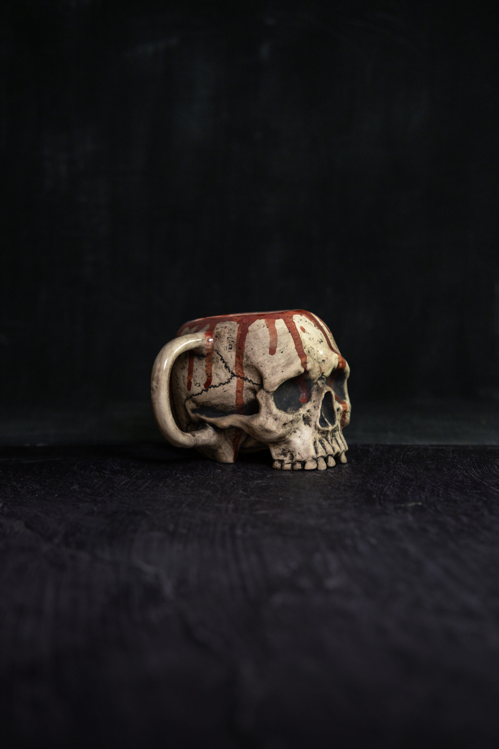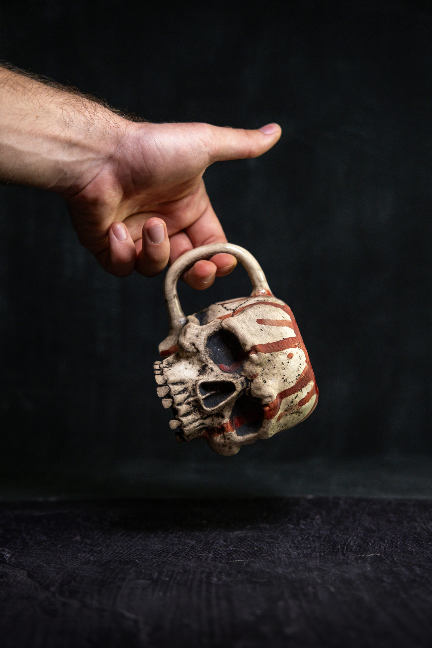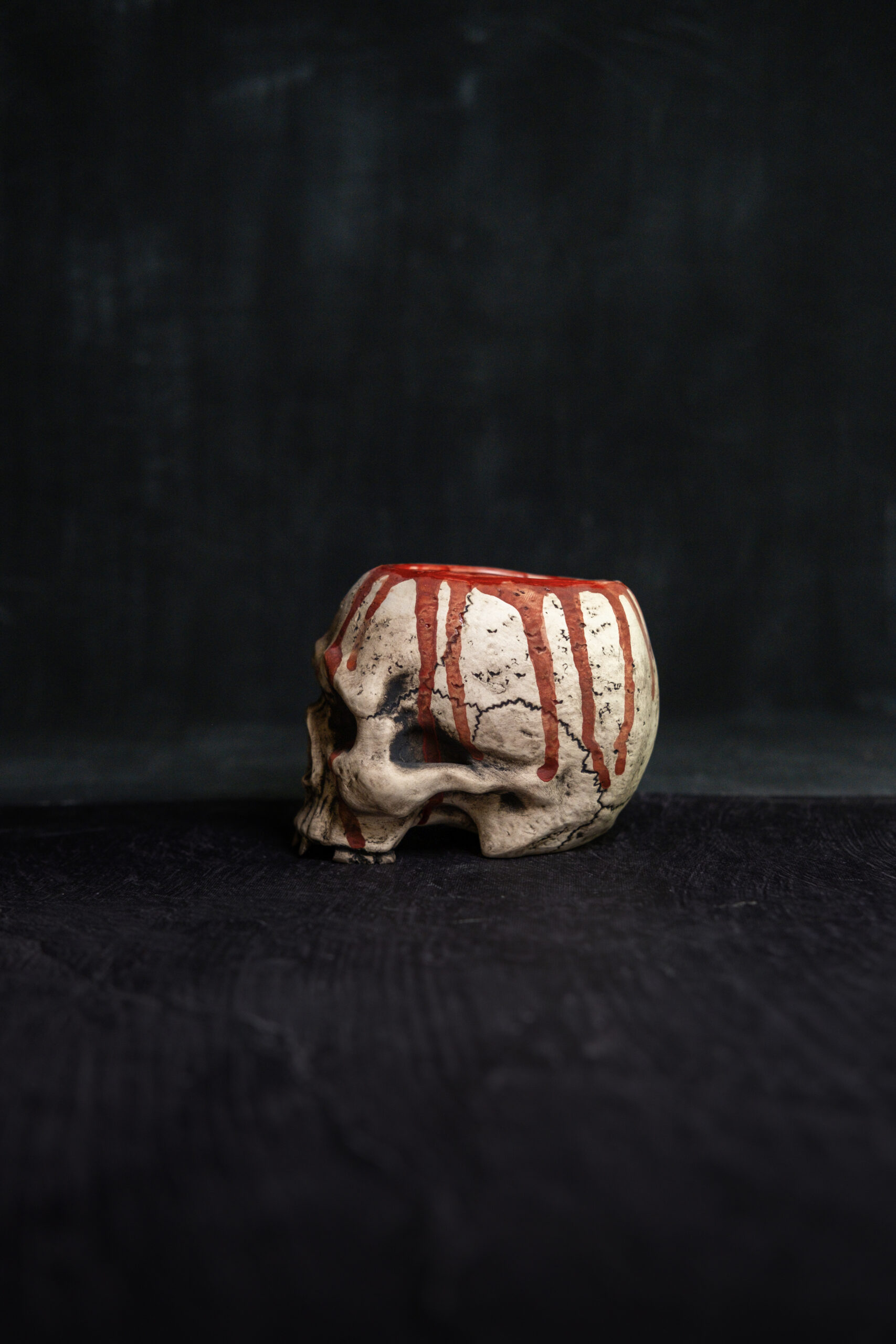 The skull stoneware mug is completely handmade. It was produced in a small business. It has been carefully studied to give the bony tissue.